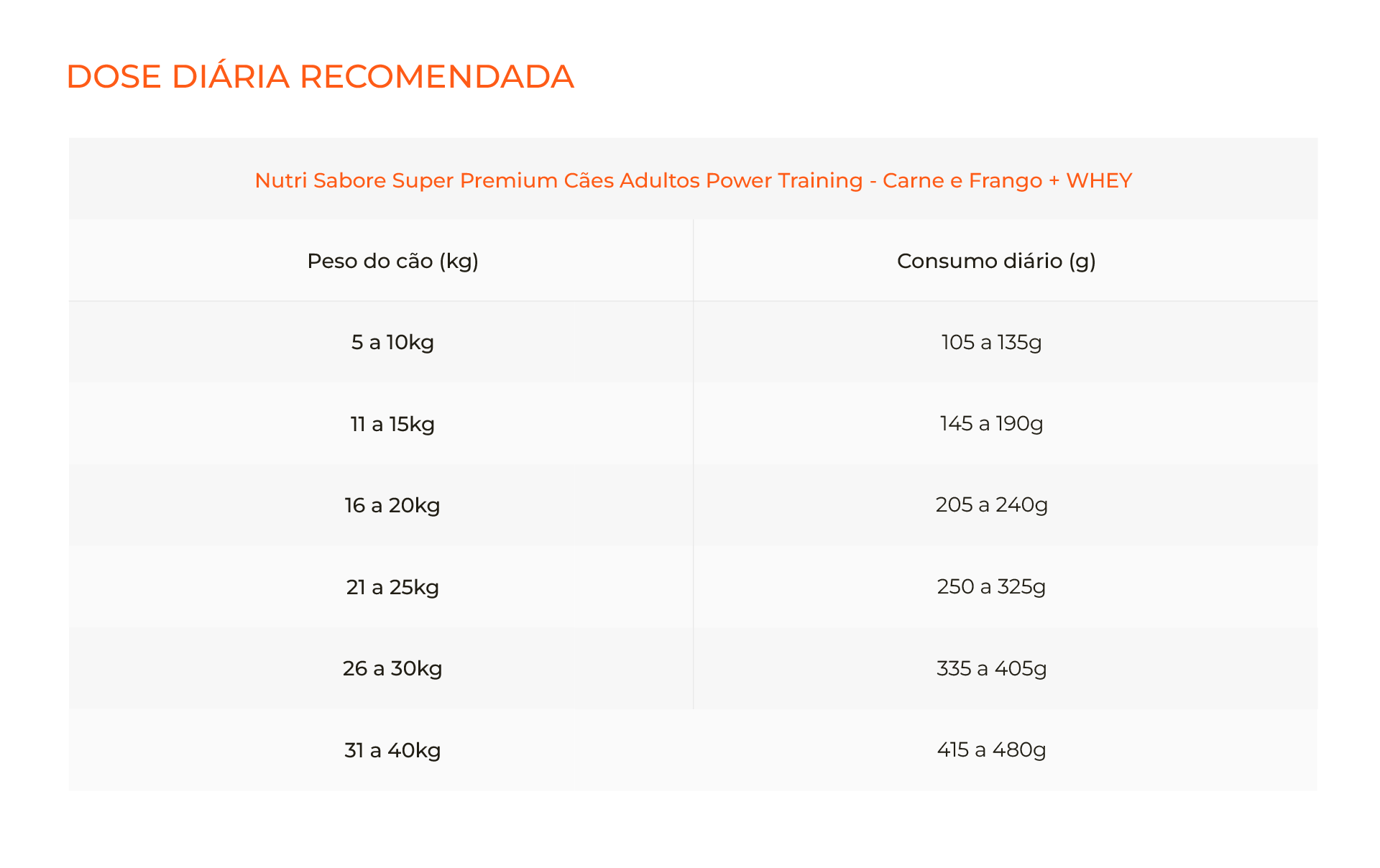 - Ômega 6 (mín.): 20g/kg